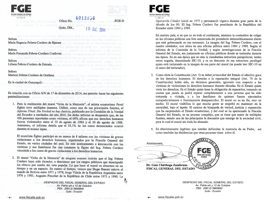 Con relación a aquello y en respuesta a la carta de la familia del expresidente León Febres-Cordero, la Fiscalía considera: