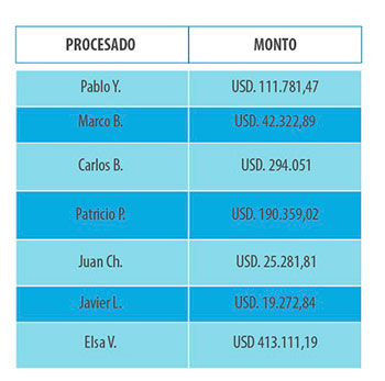 Finalmente y de acuerdo al peritaje financiero contable realizado y verificado con el informe de la Unidad de Análisis Financiero y Económico (UAFE) y los documentos remitidos por el Servicio de Rentas Internas, 7 de los 8 procesados no han podido justificar el siguiente incremento en sus ingresos: