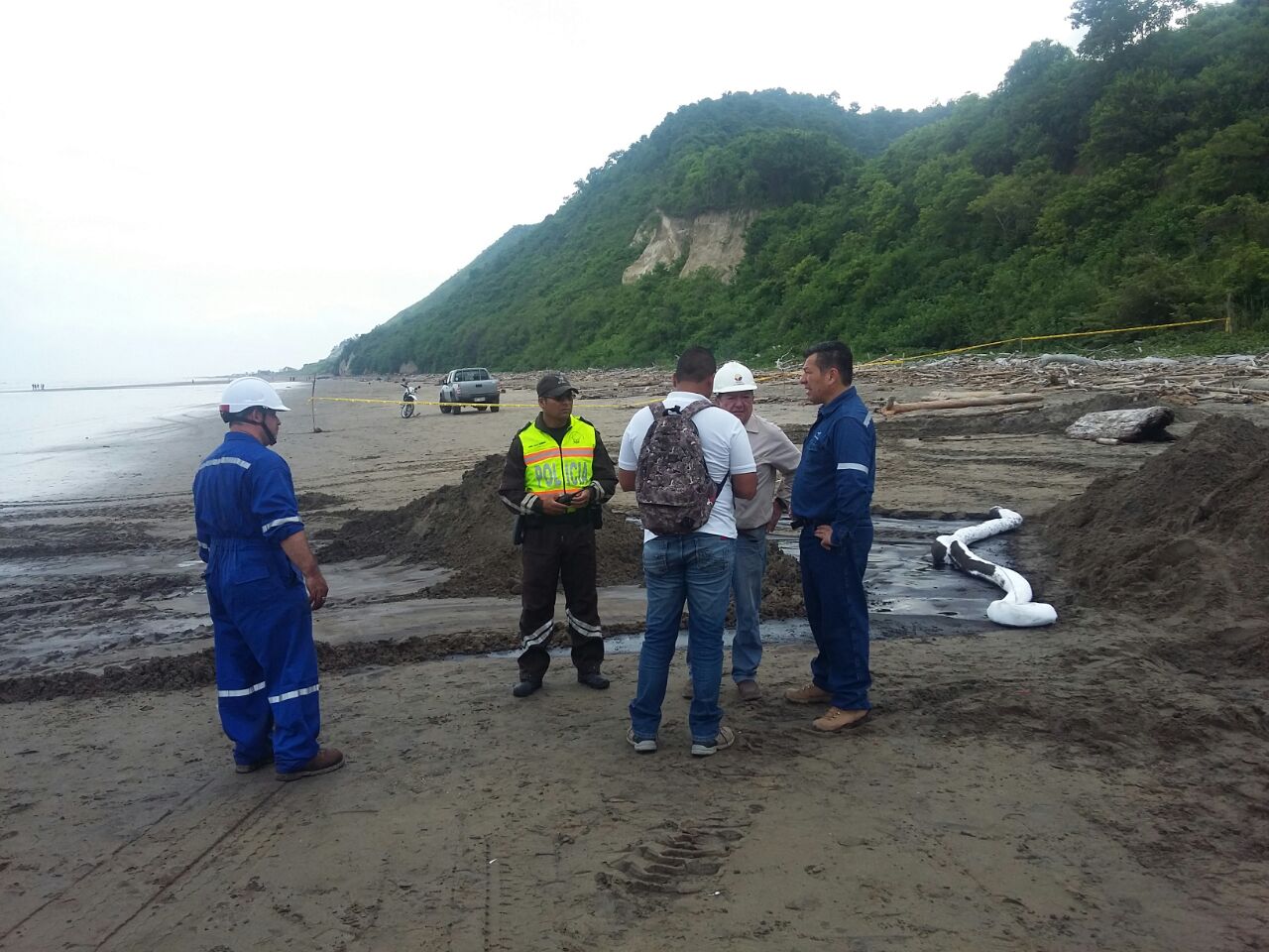 El fiscal encargado de la investigación, Gorky Ortiz, efectuó el peritaje de inspección técnica ocular con personal especializado del Ministerio del Ambiente, para esclarecer las posibles razones del derrame en las costas del Puerto Balao.