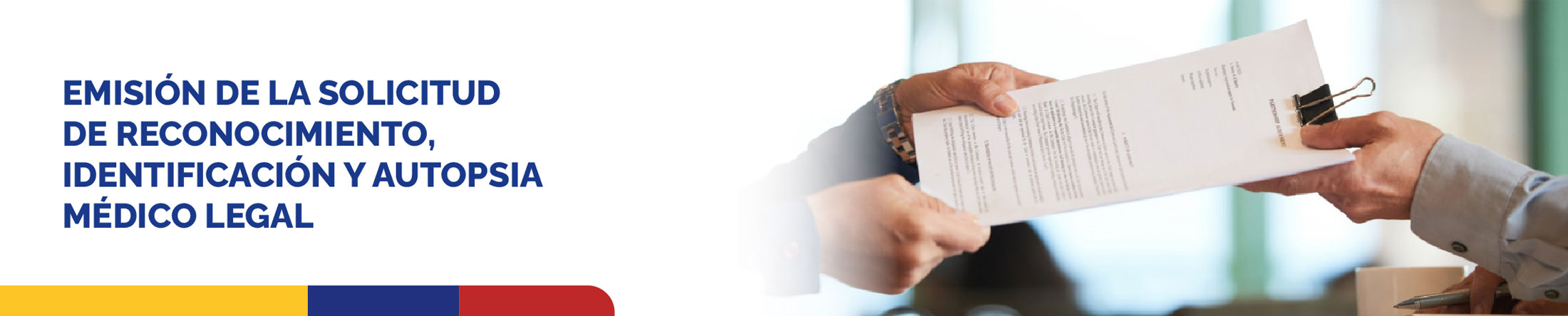 Servicio orientado a emitir la solicitud de reconocimiento, identificación y autopsia médico-legal, previo requerimiento de los familiares o conocidos de la persona fallecida, o agentes policiales que hayan realizado el levantamiento de cadáver y que requieran la práctica de la autopsia médico-legal del fallecido.